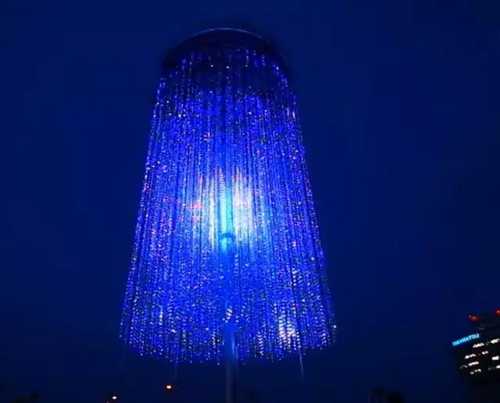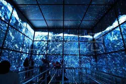 LED显示屏厂家使用多颗透明水晶光源播放不同颜色形成一幅3D活动的绘画,还可以让观众一起互动。