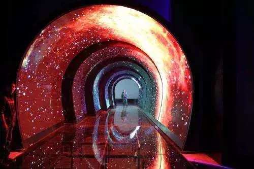 观众被邀请进入三维光空间内,整个屏体的显示效果就像人站在一个宇宙里,人在里边运动影响光粒子并让它不断颜色的变化,绚丽无比。